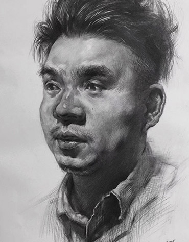 以上就是刻画头发的技巧与方法。总的来说,塑造头发时并不是说越写实越好,越将重心放在写实上,反而会适得其反。要将重心放在每个块面,首先确认头发的外轮廓,大概的方向得有。然后找出明暗交界线,找准转折点,用厚重的颜色强调明暗交界线,用纸巾擦拭出暗面。然后根据头发的走向去塑造,在最终环节,用中性或者硬性炭笔刻画细节,该提亮的地方提亮,需要压重的位置要压重,将这些步骤做好,就能刻画出完美的头发,头发刻画到位,整幅头像将会更上一个档次。