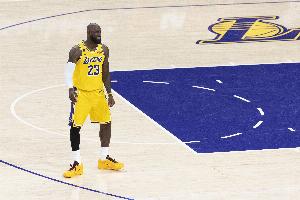 体育资讯3月17日讯 NBA常规赛,湖人对阵火箭,詹姆斯首节炸扣小贾巴里·史密斯。