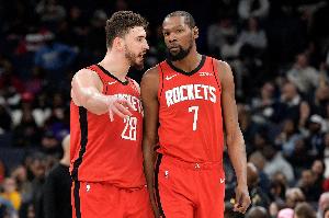 目前火箭47胜29负排名西部第五,距离身前的掘金仅1个胜场差。