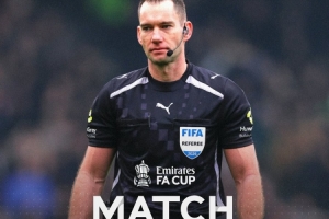 足总杯半决赛裁判确定:鲍森吹罚曼城vs圣徒 吉列特吹罚蓝军vs利兹